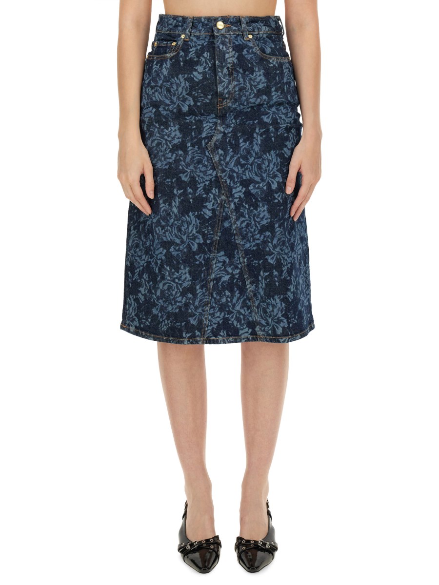 GANNI GONNA MIDI IN DENIM DI COTONE