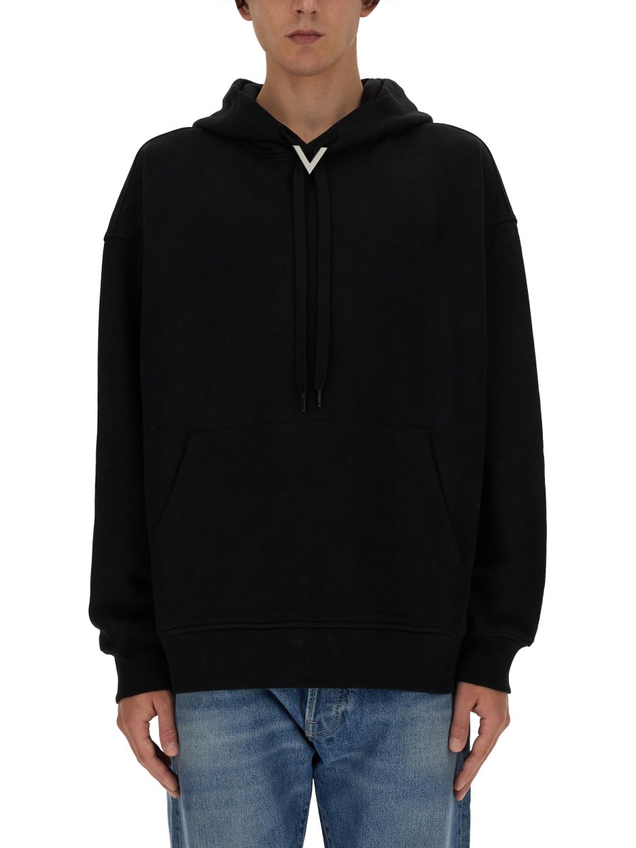 VALENTINO FELPA IN COTONE CON CAPPUCCIO E V DETAIL METALLICA