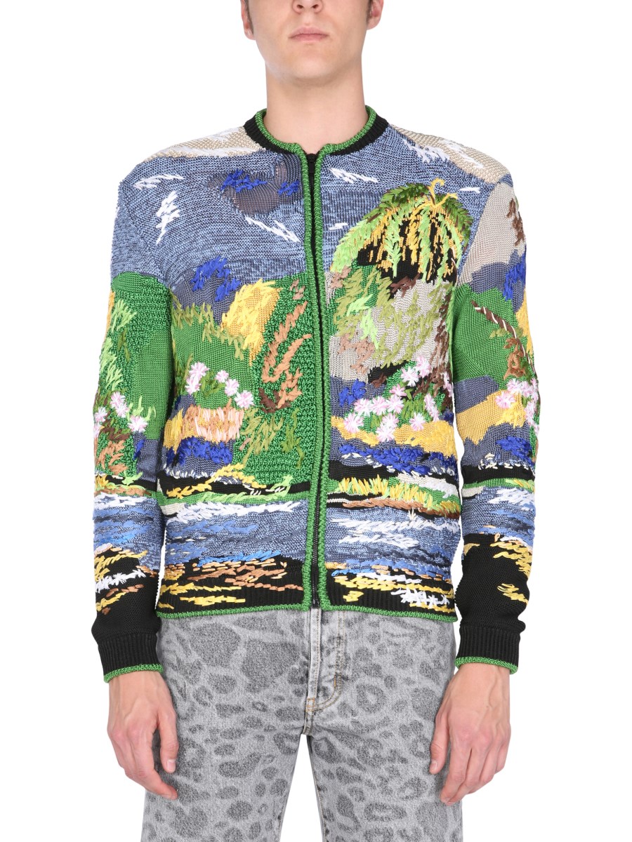Scarpe / Italia / SAINT LAURENT GIUBBOTTO TEDDY IN JACQUARD CON RICAMO TROPICAL PARADISE saldi