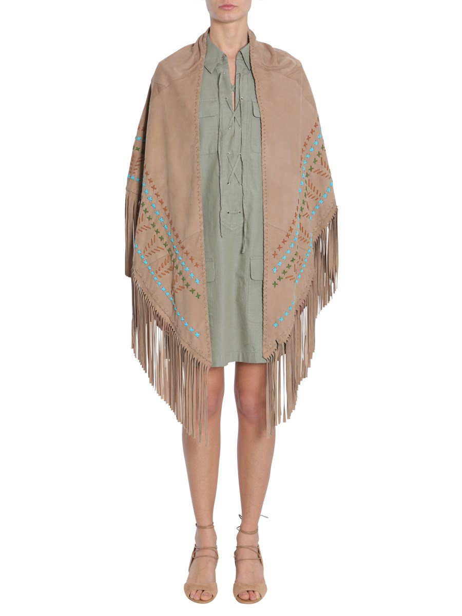 SIMONETTA RAVIZZA SCIALLE IN SUEDE CON RICAMI E FRANGE