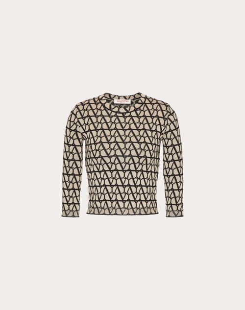 Maglia Valentino in lana Toile Iconographe- Lana (100%Lana Vergine) - Sfoderata - Lunghezza 50 cm da punto spalla per la taglia 40 IT - Lunghezza manica 61 cm da centro dietro per la taglia S IT - La modella è alta 176 cm e indossa una taglia S IT - Made in ItalyIl look è completato con una borsa Valentino Garavani Locò e scarpe Valentino Garavani Nite Out.
